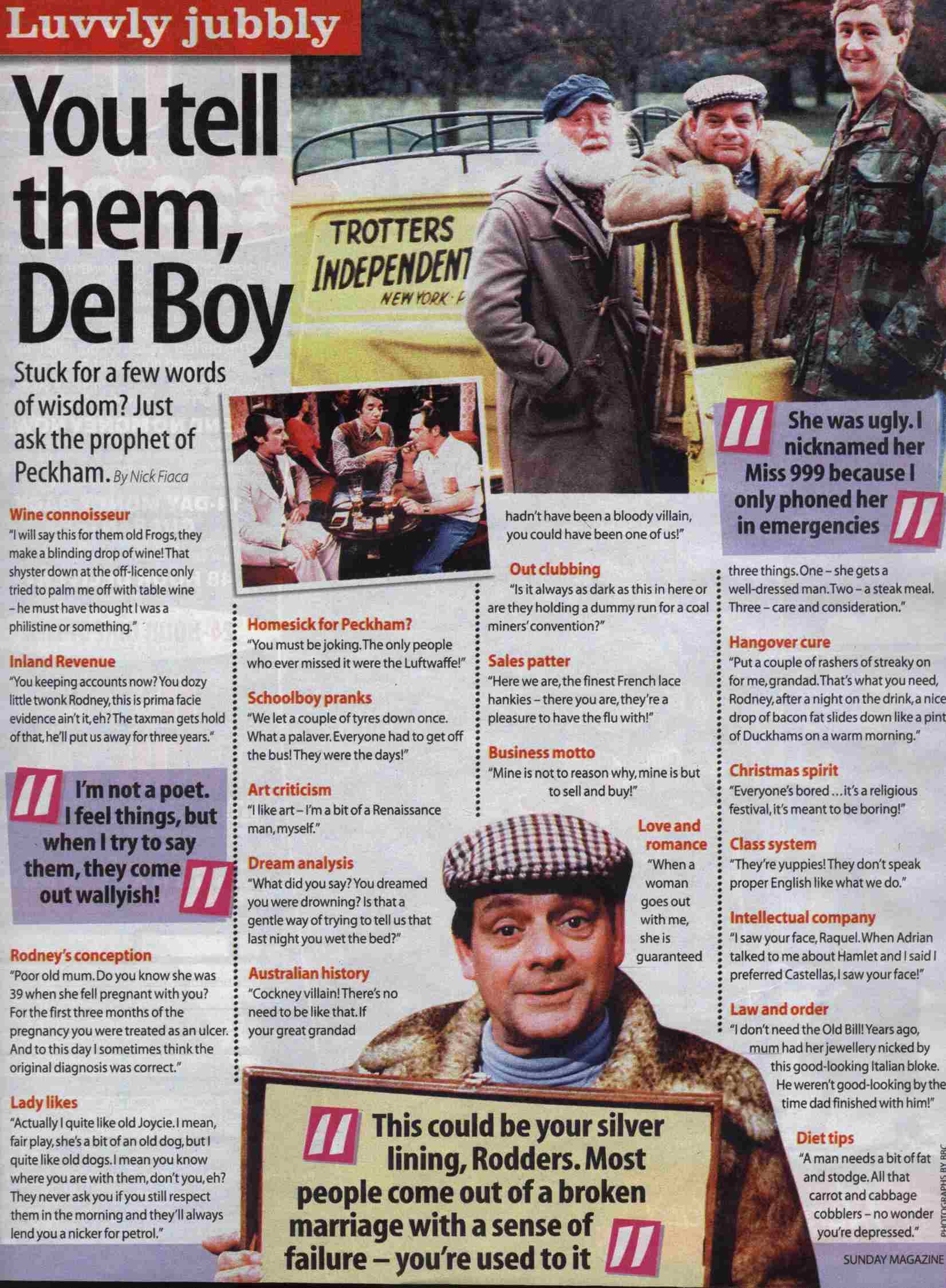Last Sunday's News of the World's supplement magazine Sunday, included an article listing some of Delboy's all-time favorite sayings. Click Here to view the article.